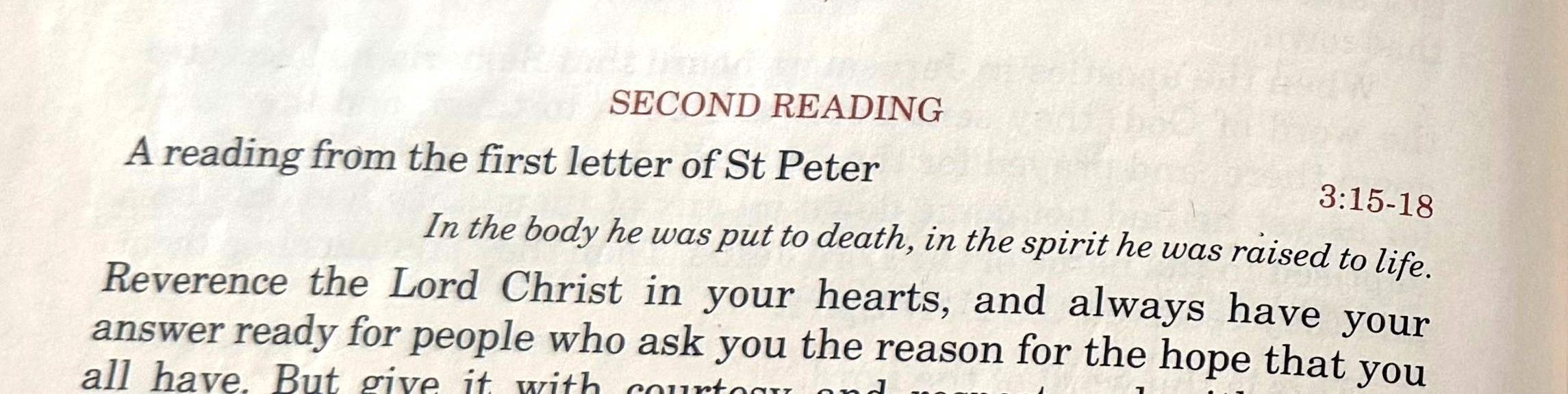 On Sundays and major feasts, there is a second reading before the Gospel which comes from the New Testament. This reading was not chosen for its harmony with the other two readings.